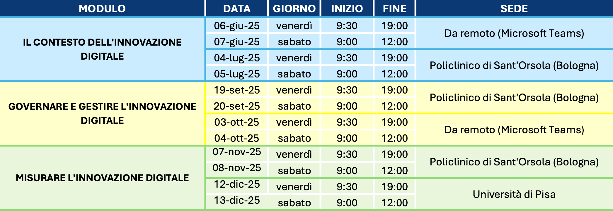 Il corso avrà la durata di 6 weekend in 6 mesi (venerdì intera giornata e sabato mattina) da giugno a dicembre 2025 e sarà erogato in